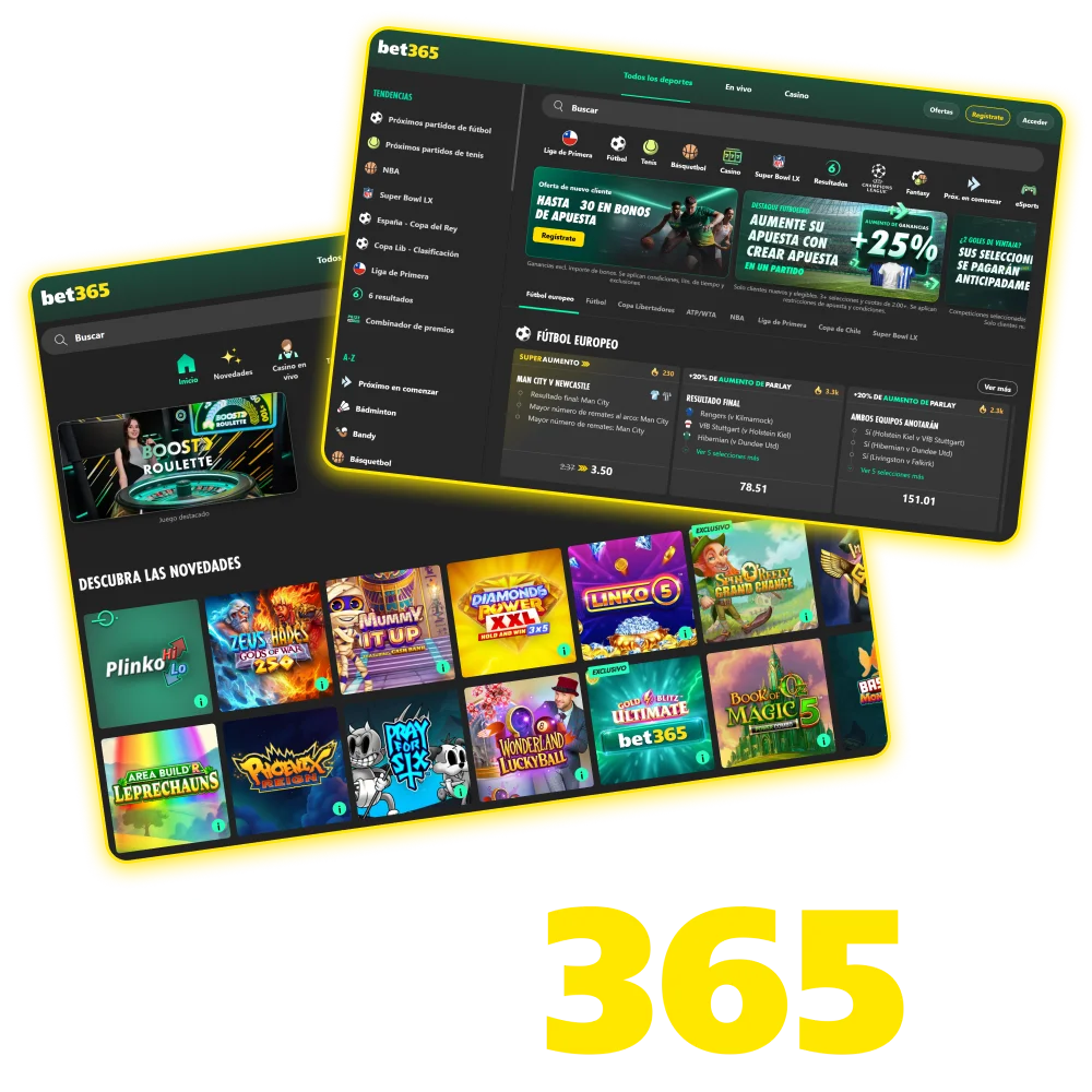 Desde el año 2000, Bet365 opera con licencia internacional, ofreciendo entretenimiento seguro en apuestas deportivas en vivo, ciberdeportes, casino en vivo y tragamonedas. Accede desde tu móvil con apps para iOS y Android. Deposita con VISA, Mastercard, Skrill o Transferencia Bancaria. Reclama tu bono de bienvenida de 100% hasta CLP 26.100 y comienza a jugar hoy. Miles de jugadores chilenos ya confían en esta plataforma. Tú también puedes.